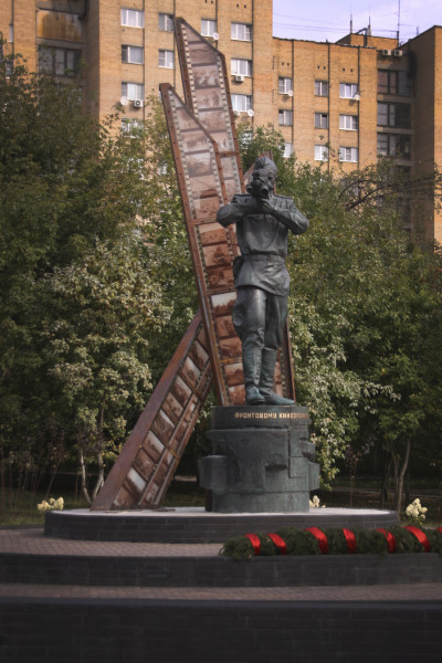 В канун 75-летия Победы советского народа в Великой Отечественной войне, в подмосковном Красногорске, около Российского государственного архива кинофотодокументов, открыли монумент «Фронтовому кинооператору».